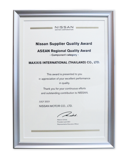 日本日產汽車(Nissan Motor)于9月底公布2021年亞太區供貨商質量優秀獎(2021 Nissan ASEAN Regional Supplier Quality Award),該獎項由日產汽車總社社長 Mr. Makoto Uchida 親自頒發,瑪吉斯輪胎再度獲得日產汽車肯定,今年為第二次獲頒此殊榮。